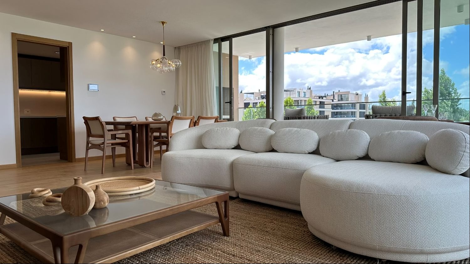 Amplios apartamentos con ventanales de piso a techo, salida a balcón con parrillero propio, cocina definida con área de lavadero.