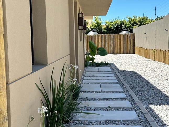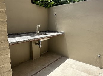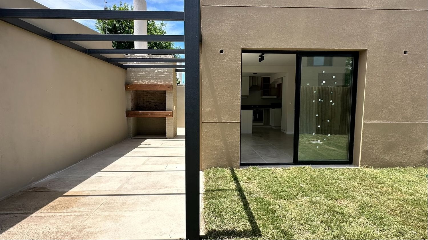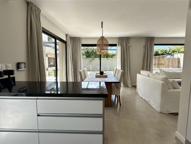 Living comedor con estufa de alto rendimiento y salida a jardín con parrillero y pérgola. Cocina semi integrada con barra, equipada con horno, anafe y campana, y salida a terraza lavadero.