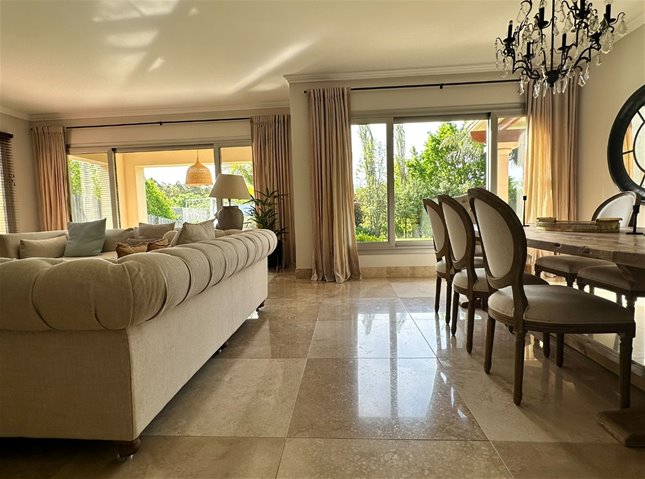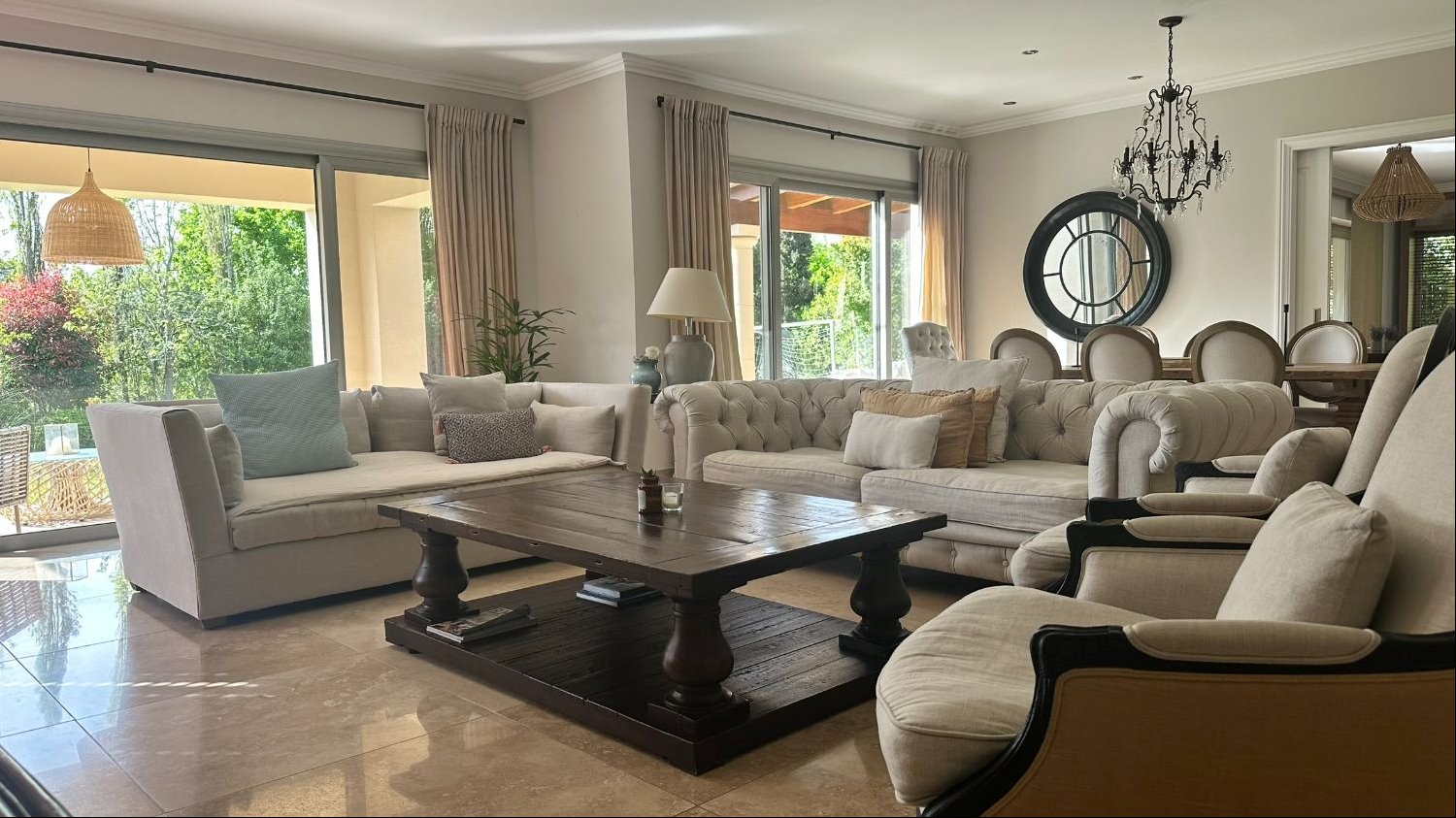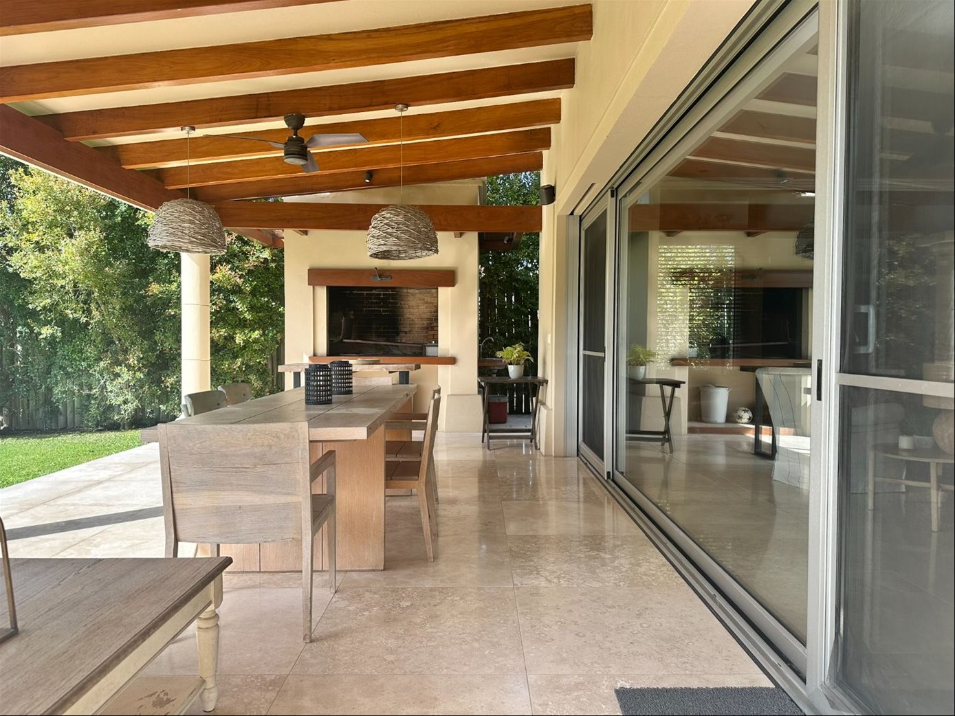 Gran estar que se puede integrar al living comedor, con salida a pérgola techada con parrillero y acceso al jardín.