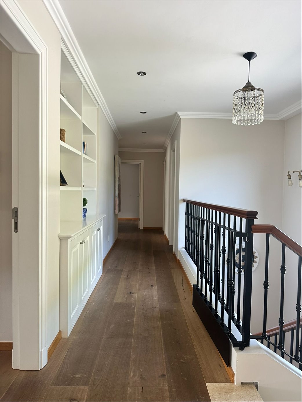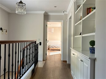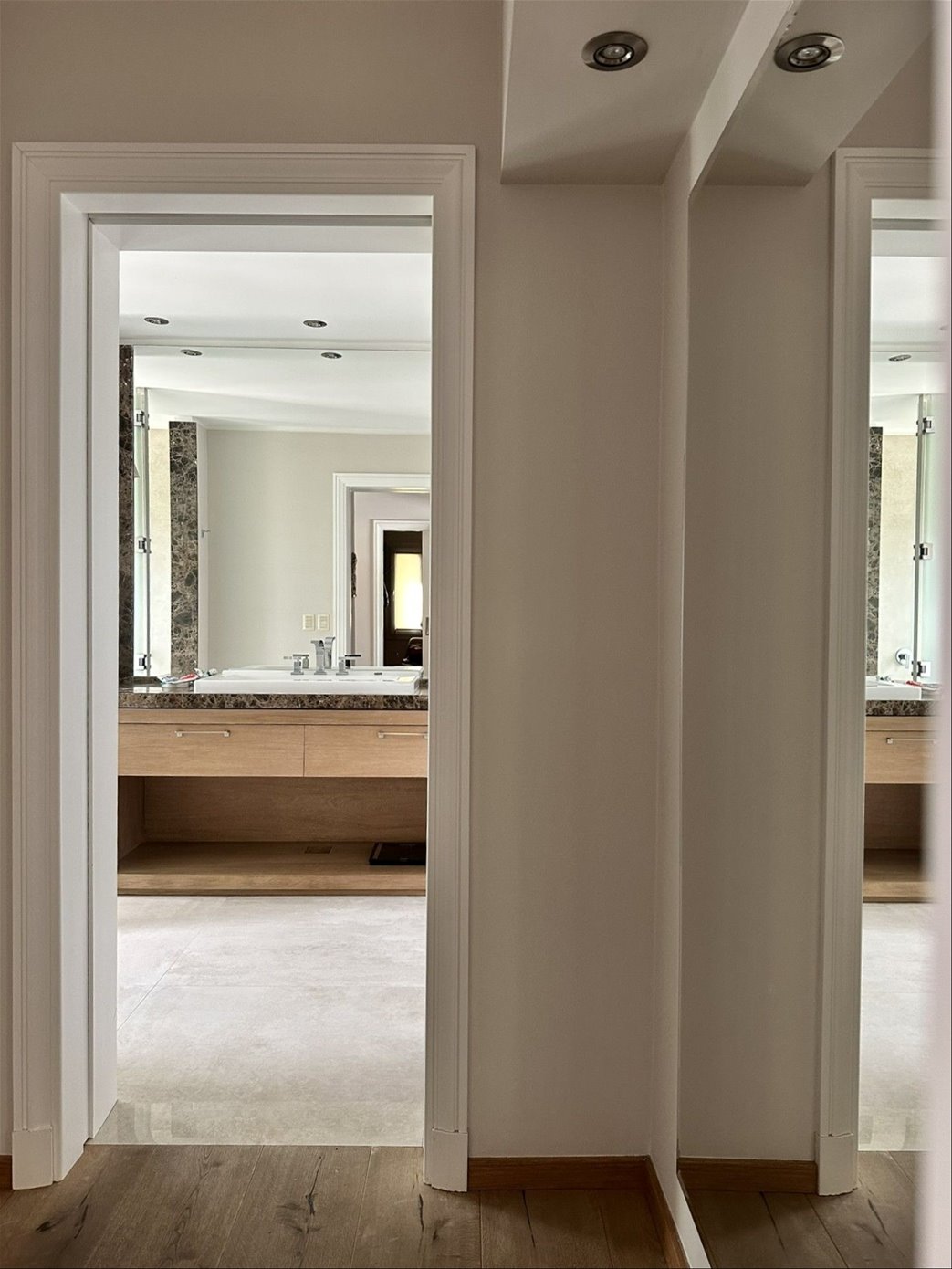 En planta alta hall de distribución y placard para ropa blanca. 4 dormitorios y 3 baños desarrollados de la siguiente manera: dormitorio principal en suite con 2 vestidores y salida a balcón, 1 dormitorio en suite con placares y 2 dormitorios con placares que comparten 1 baño completo.