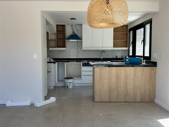 Living comedor con estufa de alto rendimiento y salida a jardín con parrillero y pérgola. Cocina semi integrada con barra, equipada con horno, anafe y campana, y salida a terraza lavadero.