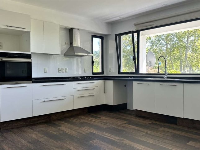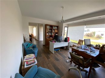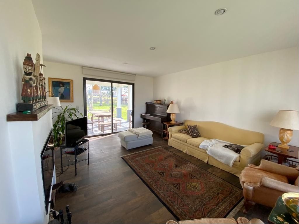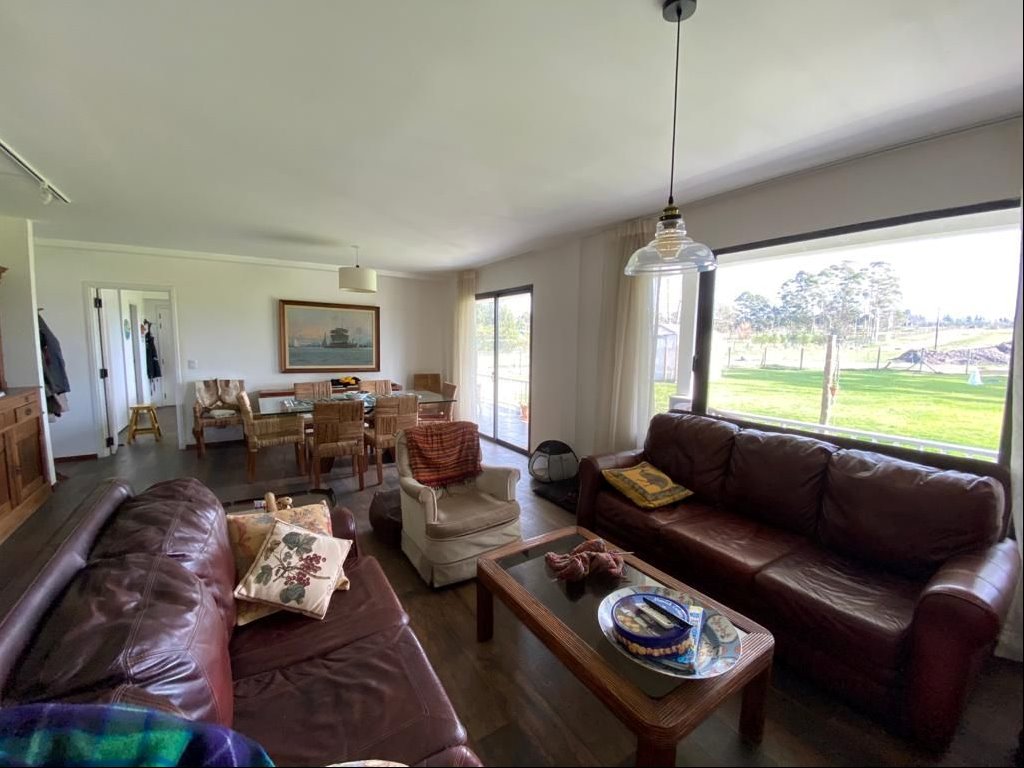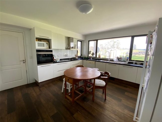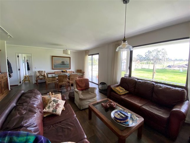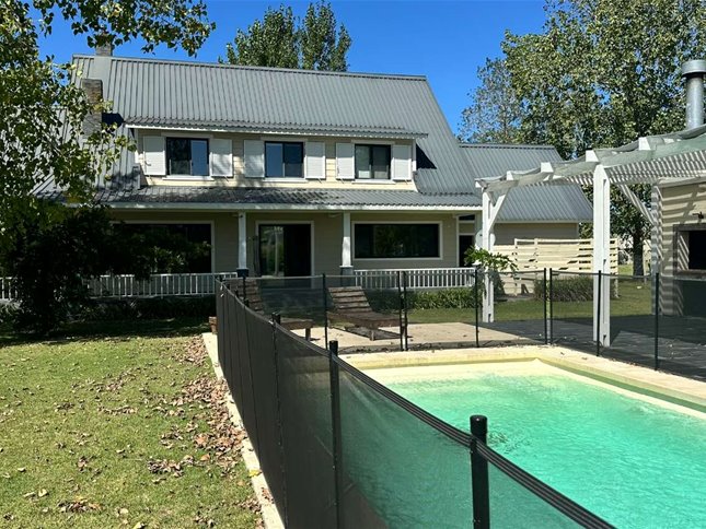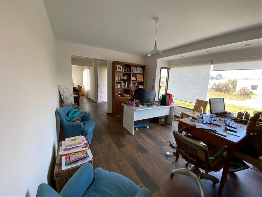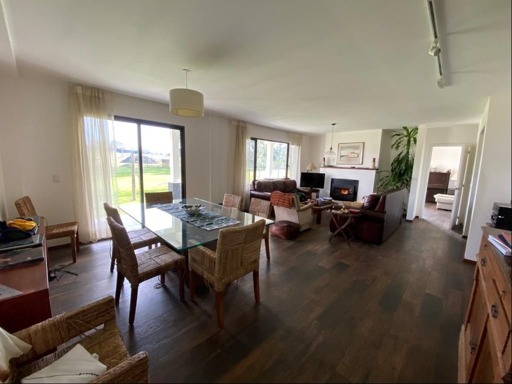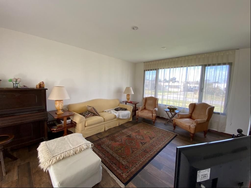 Hall de entrada, living, comedor, estar, baño social, cocina grande, servicio completo y gge para 2 autos.