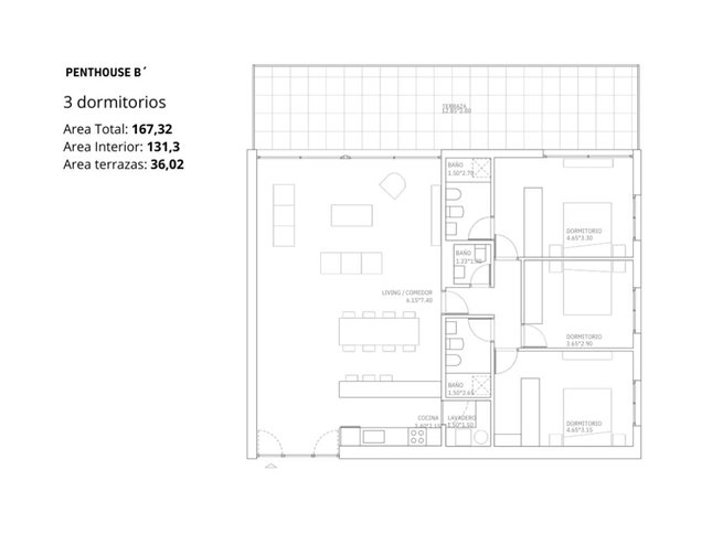 Se destaca las dimensiones de las unidades (dos dormitorios 150m2) altura de los techos, integracion de luz.