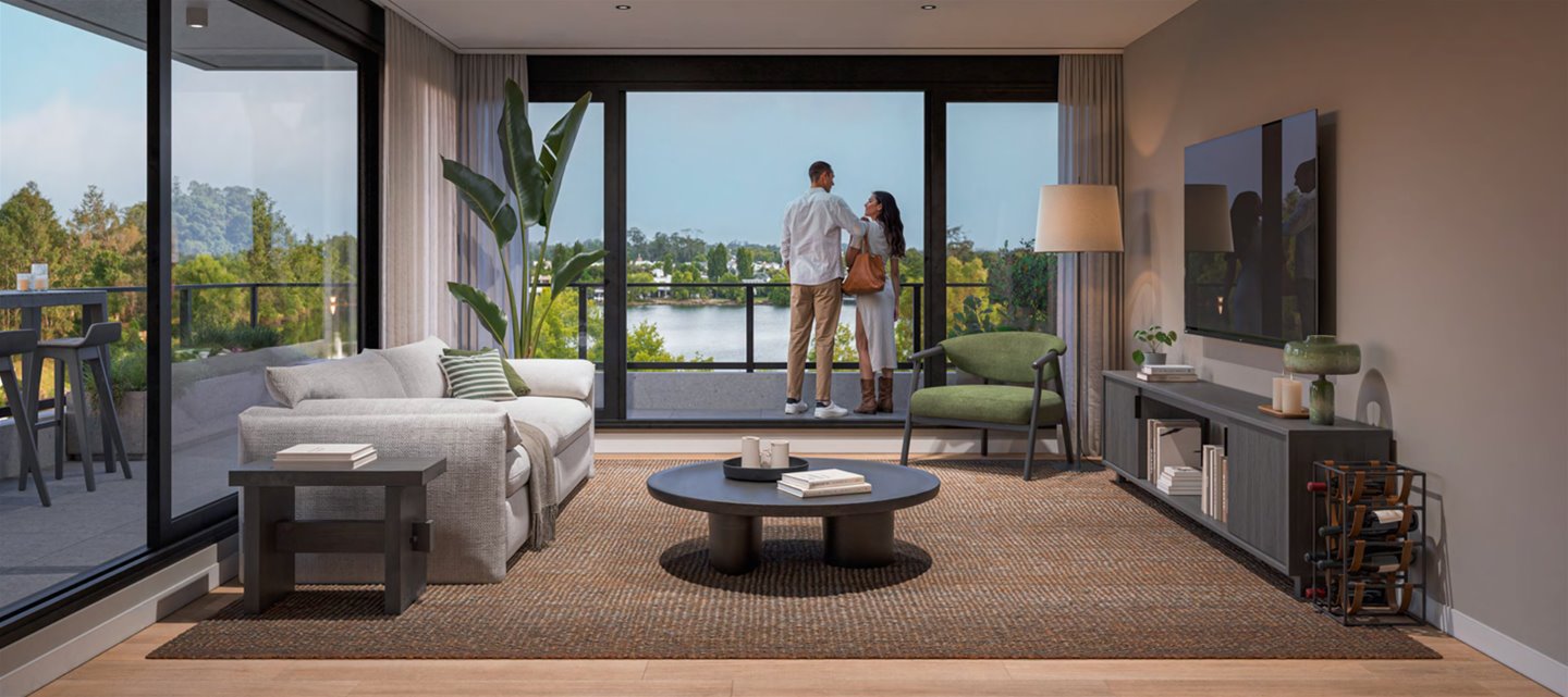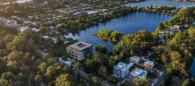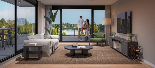 El edificio ofrece 37 apartamentos de 1, 2, 3 y 4 dormitorios, cuidadosamente diseñados por Estudio Habitar para maximizar la relación con el entorno: todas las áreas sociales se orientan hacia las vistas abiertas al lago y al bosque, potenciando la sensación de amplitud y serenidad.