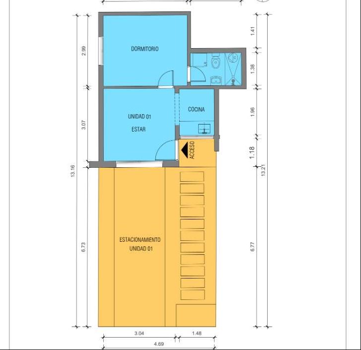 Complejo compuesto por 13 unidades: 4 monoambientes, 8 unidades de 1 dormitorio y 1 unidad de 2 dormitorios.