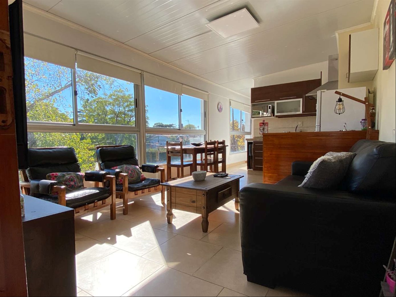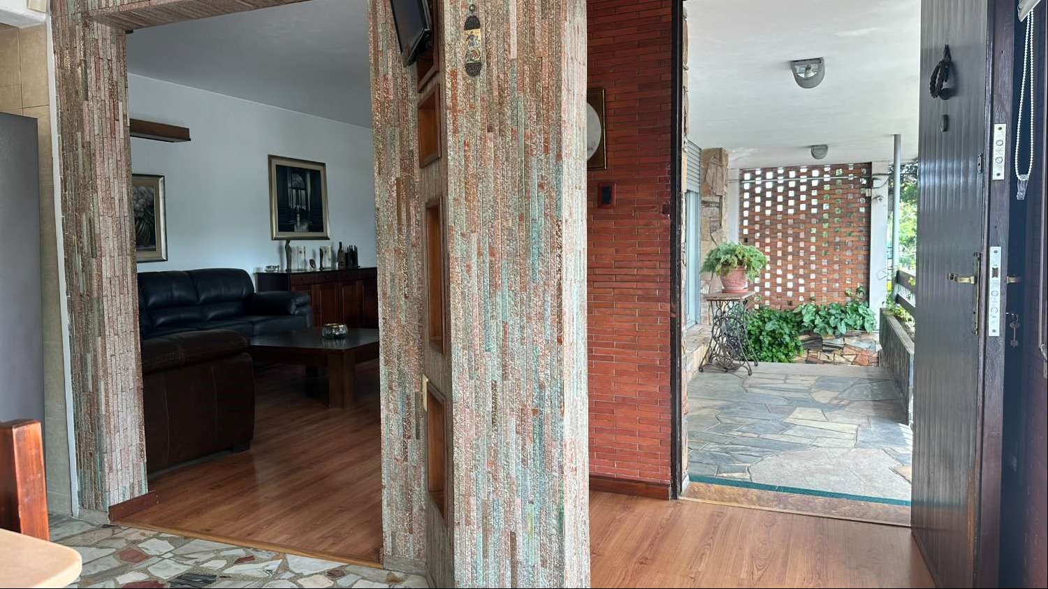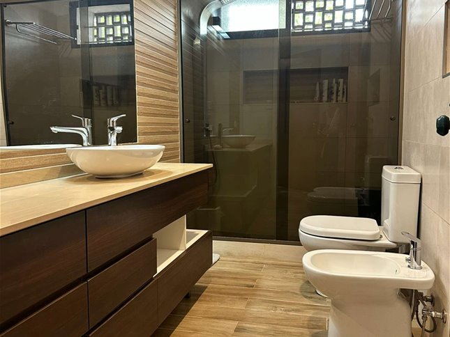 Planta Alta: cuenta con un apartamento con doble acceso, uno totalmente independiente de la casa y otro desde la misma casa, esta área tiene un living comedor y cocina integrada con gran ingreso de luz, dos dormitorios (uno se usa como vestidor) y baño completo. En la misma planta, barbacoa con parrillero y cocina, y zona de lavadero