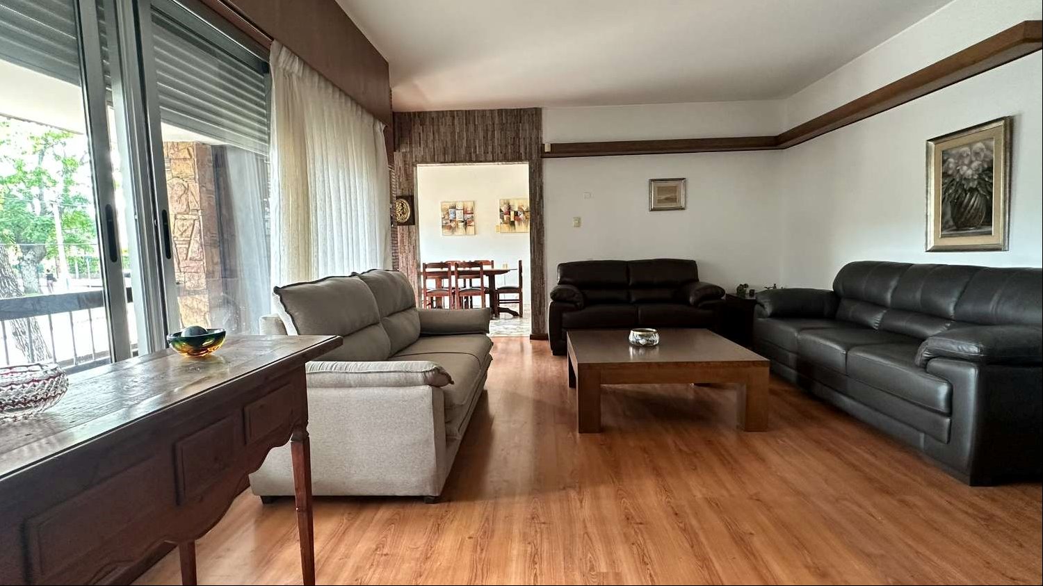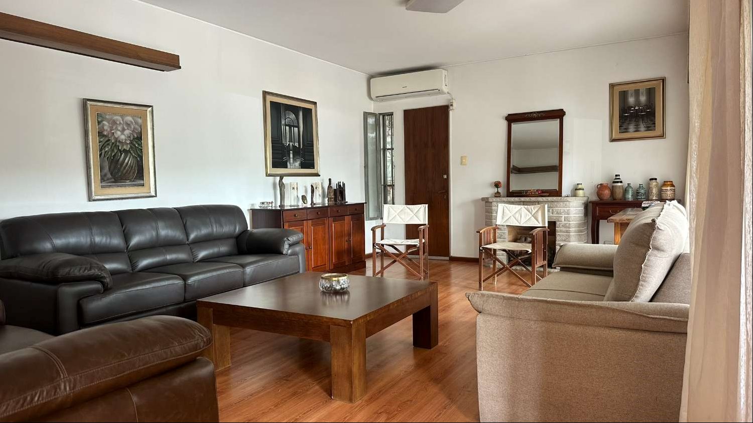 En la planta ppal: doble entrada a gran living con estufa a gas y equipo de AA orientado al norte, cocina con comedor diario, hall de distribución hacia dormitorios con placard para ropa blanca y baño completo (este fue reciclado). Uno de los dormitorios cuenta con placard y AA. Los pisos en ambos son de parquet y cuentan con doble ventana y persianas. Toda esta planta cuenta con vidrios con DVH, y persianas y rejas en dormitorios