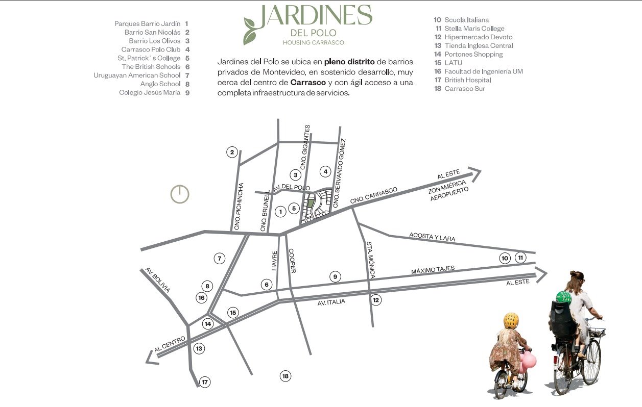 Jardines del Polo es un masterplan de residencias exclusivas, ubicado en un macrolote vecino al Carrasco Polo Club, en pleno circuito de los mejores colegios y campos deportivos, a minutos de Arocena y con rápida salida al Este.